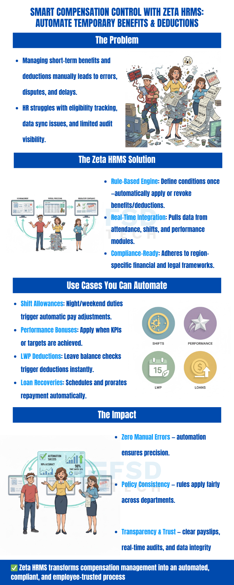 Let’s explore how Zeta HRMS handles temporary benefits and deductions through eligibility-based rule engines.